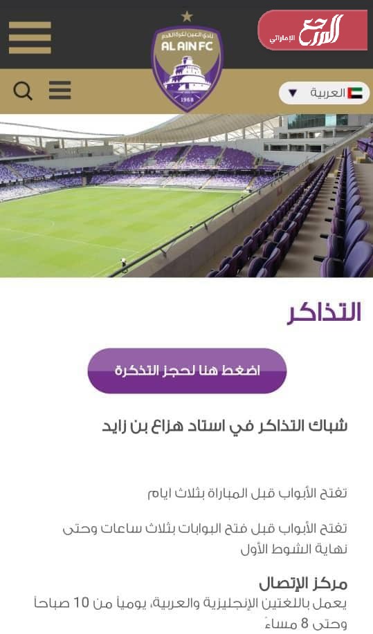 طريقة حجز تذاكر استاد هزاع بن زايد