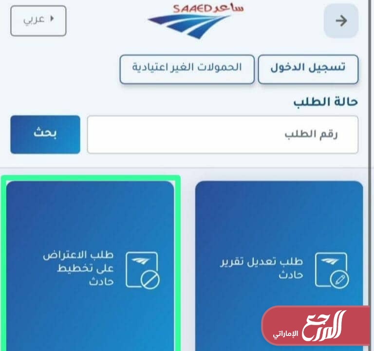 طلب الاعتراض على تخطيط حادث نظام ساعد saaed360.saaed.ae