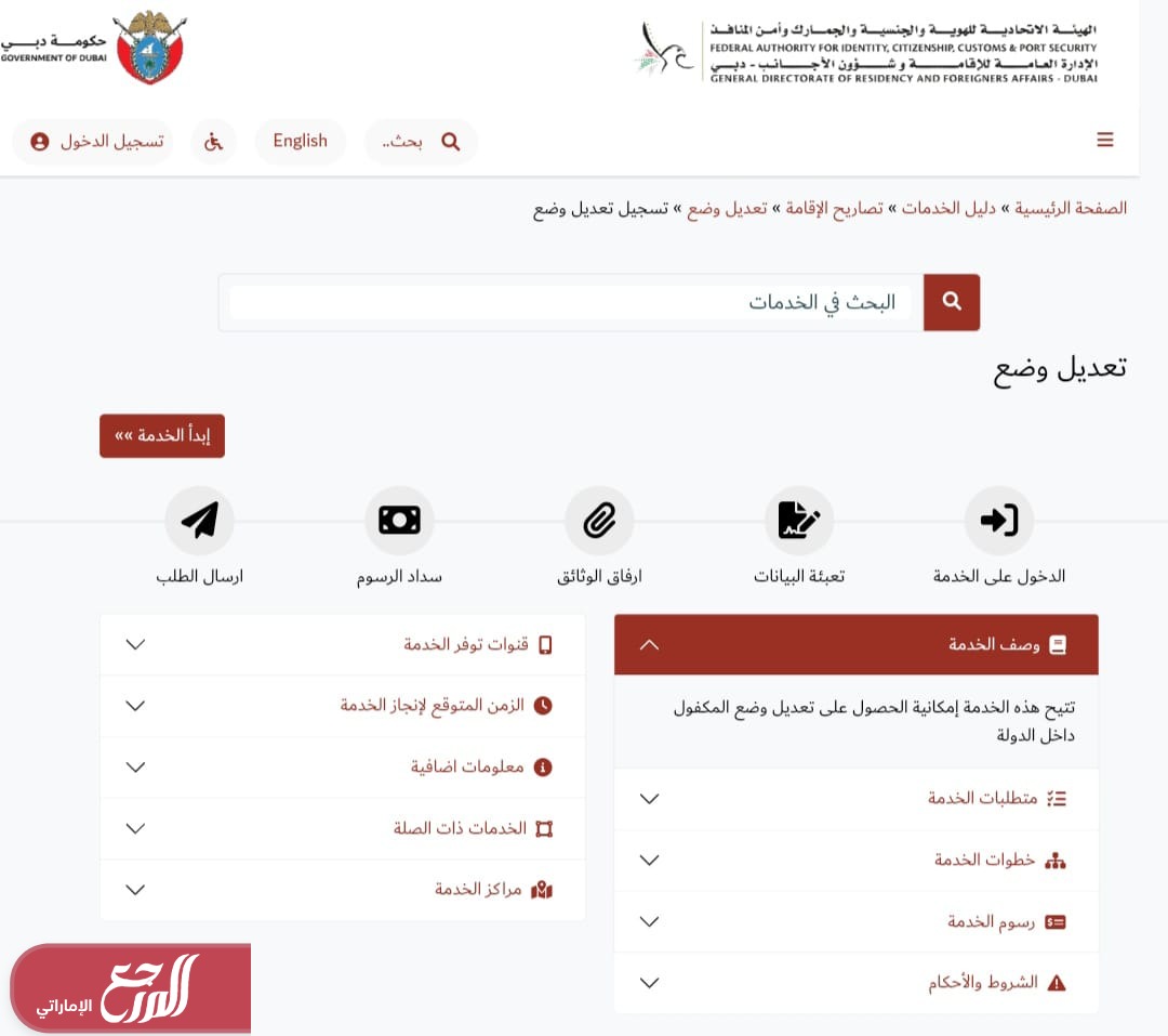 • الدخول إلى خدمة تعديل الوضع بعد إلغاء الإقامة في دبي “من هنا“.